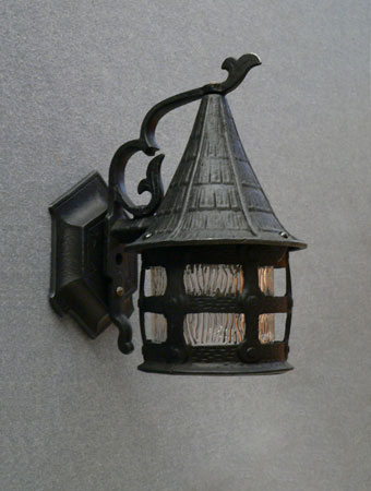 Sconce S168*Not Available* This charming Art Deco porch sconce from the 1930s is in the Storybook Style. It would be perfect for a Craftsman or Tudor home. It has been rewired and the finish has been refurbished. Three separate sconces in this style are available. H: 9.5" |