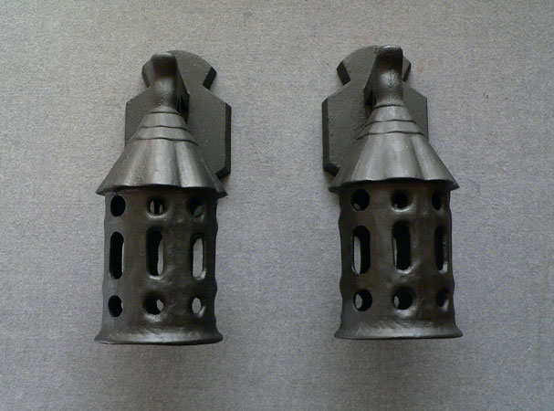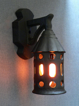 Sconce S170*Not Available* This pair of Art Deco porch sconces from the 1930s are made of cast iron. They would be perfect for a Craftsman or Tudor home. The wiring has been updated and the finish has been refurbished. H: 11" |
